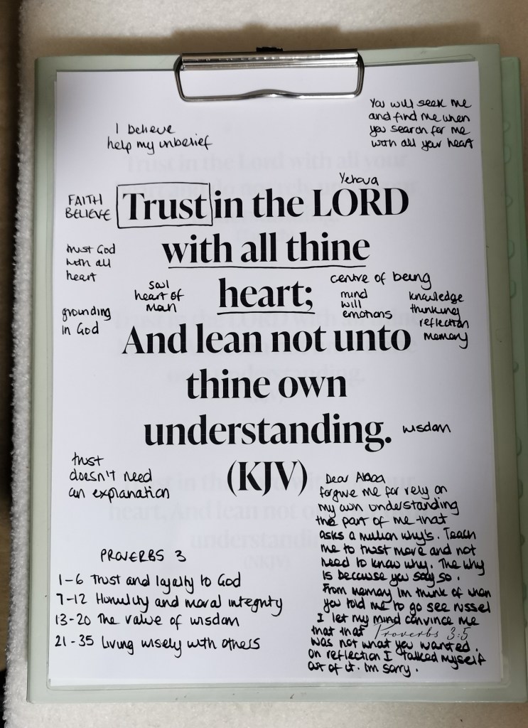 In Scripture, the “heart” isn’t just emotion. It’s the centre of being, the place where mind, will, emotions, memory, and identity meet. Trusting God with all my heart means: